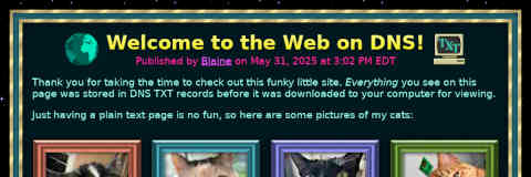 An experiment that uses DNS TXT records to act as a rudimentary object store for a small website. Why pay for hosting when you’re already paying for a domain name?